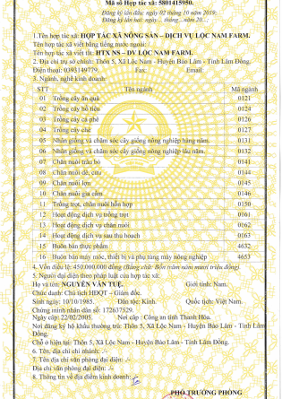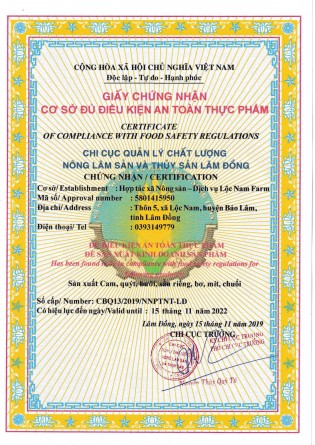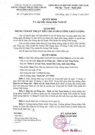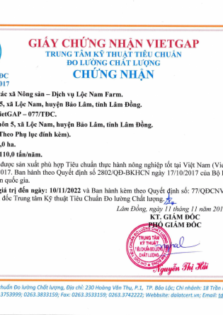 Chứng nhận ViệtGap - HỢP TÁC XÃ NÔNG SẢN - DỊCH VỤ LỘC NAM FARM